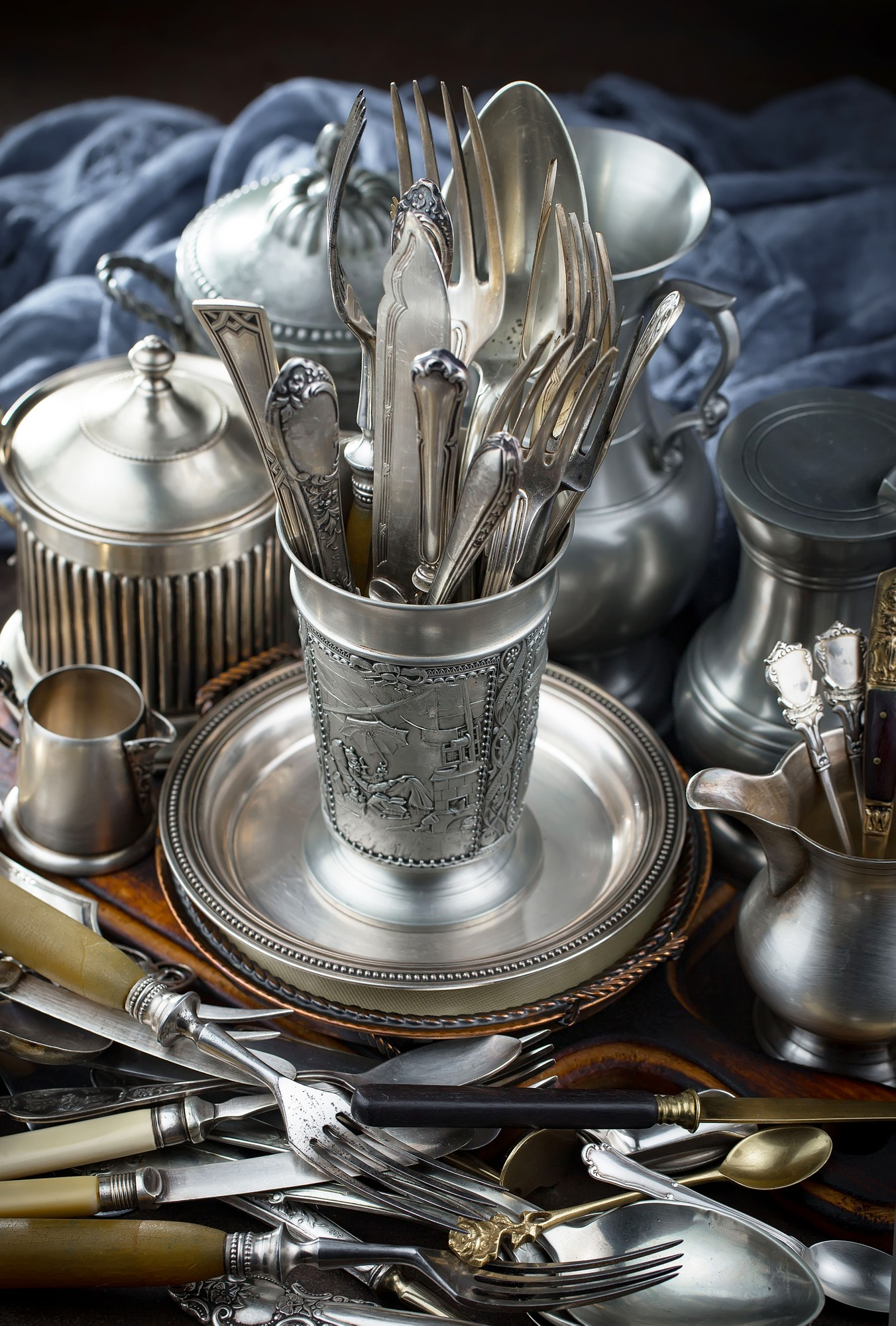 Tafelsilber: Altes Besteck, Geschirr oder Dekorationselement